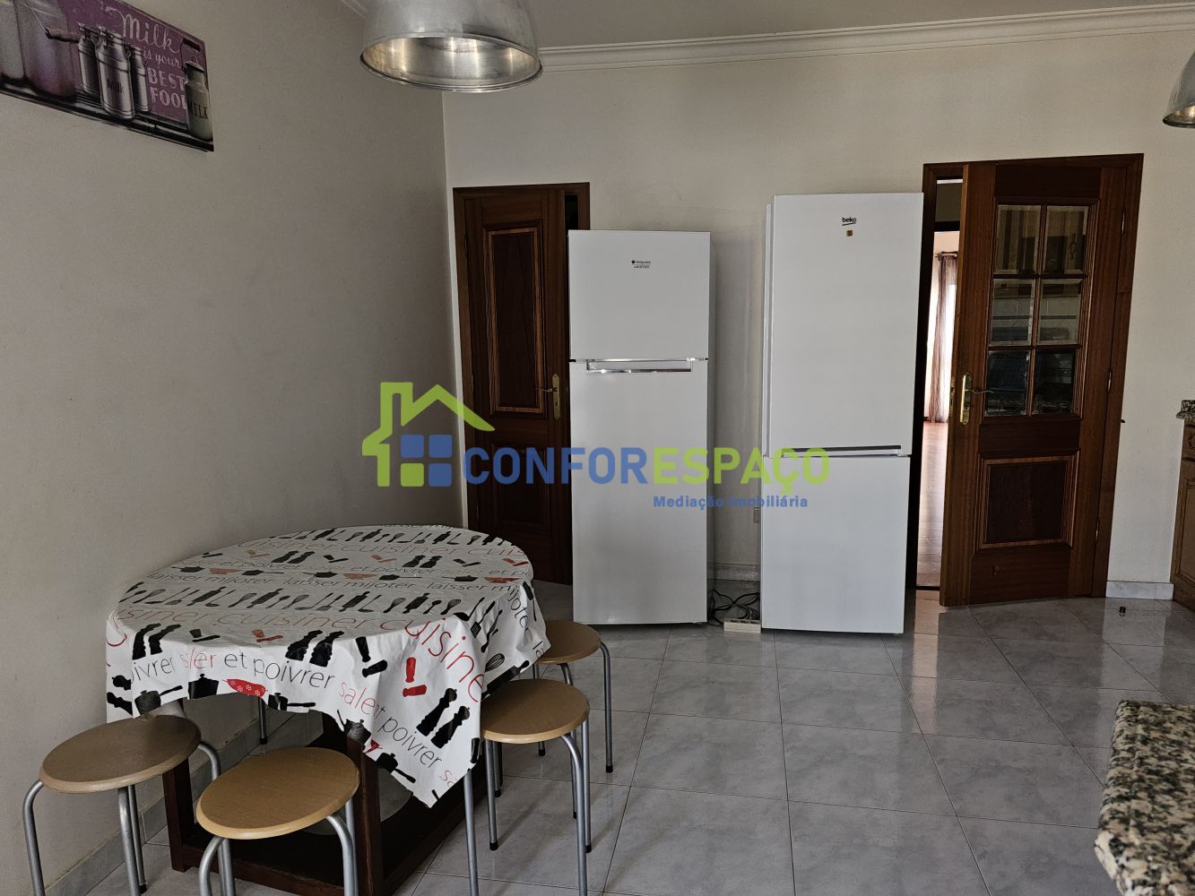 Rua 5 de Outubro 84 Rés do Chão, 6000-159, Castelo BrancoAPARTAMENTO T4 PARA ARRENDAMENTO EM CASTELO BRANCO - Apartamento T4 para arrendamento na zona sul de Castelo Branco; - O imóvel encontra-se totalmente mobilado e equipado; - Cozinha equipada com exaustor, máquina de lavar, micro-ondas, placa, esquentador; - A cozinha tem acesso a uma despensa; - Sala com lareira; - Um dos quartos tem roupeiros embutido; - Todas as divisões têm acesso a uma varanda; - Uma das Wc tem banheira simples e outra polibã; - A sala e os quartos têm pavimento em parquê; - A cozinha e wcs têm pavimento em mosaico; - 7º andar com elevador. Localizado no centro da cidade de Castelo Branco, este imóvel destaca-se pelo fácil acesso aos transportes públicos incluindo comboios, autocarros e auto-estradas. Perto do imóvel podemos encontrar bancos locais assim como clínicas médicas diversas: tudo isso garante comodidade inigualável através das estabelecimentos essenciais como farmácias além supermercados próximos capazes atender às necessidades diárias familiares enquanto crianças têm várias escolas jardins infância á disposição oferecendo excelente formação desde tenra idade! Condições de arrendamento: - Duas rendas + uma caução + três últimos recibos de vencimento; - Fiador + três últimos recibos de vencimento; A Conforespaço é uma agência imobiliária com sede no concelho de Castelo Branco. Com largos anos de experiência, garantimos um serviço de excelência de forma a encontrar a melhor solução para cada cliente. Criar empatia, desenvolver a confiança é o nosso lema. - Visite os imóveis que mais gostar, sem qualquer compromisso; - Faça propostas e beneficie do nosso acompanhamento durante todo o processo. - Licença AMI nº. 7284/2006 A sua casa está próxima. Marque a sua visita. Telefone: 272 085 495 (chamada para rede fixa nacional) Telemóvel: 934 527 910 (chamada para a rede móvel nacional) E-mail: info@conforespaco.com Endereço: Rua 5 de Outubro, 84 – R/C. 6000-159 – Castelo Branco